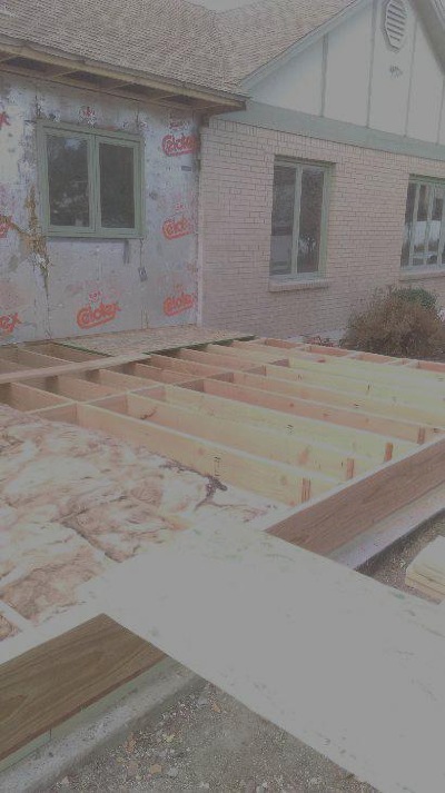 Subfloor on addition we built, notice insulation where old foundation and old addition were. The only possibility of insulating this was before we sheeted it. Snow Bear Construction takes the time to complete details that affect your comfort and satisfaction other builders skip. We also reoriented joist orientation with engineers approval so heat ducts could be placed in joists bays, allowing full height in crawl space and heat where old addition was.