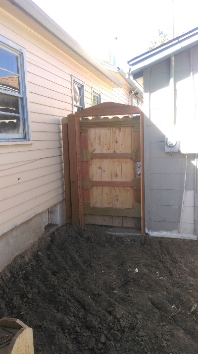 To keep Sue's backyard private we built a bolt lockable gate., keyed to match the house.