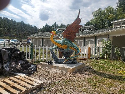 Snow Bear Construction helped Elvira and her volunteers with a solid base and mount for their newest attraction at the Historic Tiny Town Railroad.