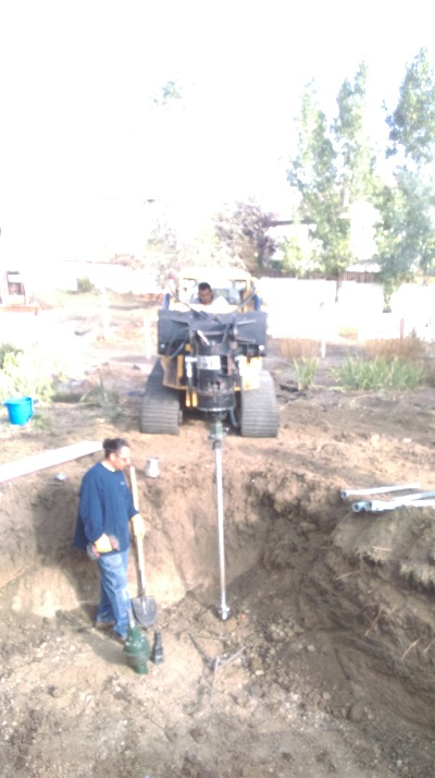 We have experience with both poured caissons and helical piers. This photo shows an excavation by us getting helical piers driven. The engineer got tied up and could not get to site so with his permission I made our call on depth. Even though we hit our bearing pressure relatively shallow I had contractor keep drilling another 10 ' to a more consistent bearing pressure, boy was the engineer happy as it was his house and addition we were building.